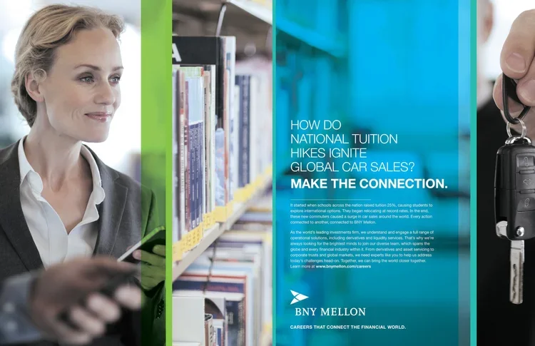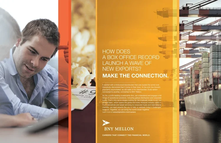 Purpose: Create a campaign that gives the company a refreshed and contemporary image amongst potential career candidates. We chose to highlight BNY's services by showcasing how engrained they were in everyday events.
